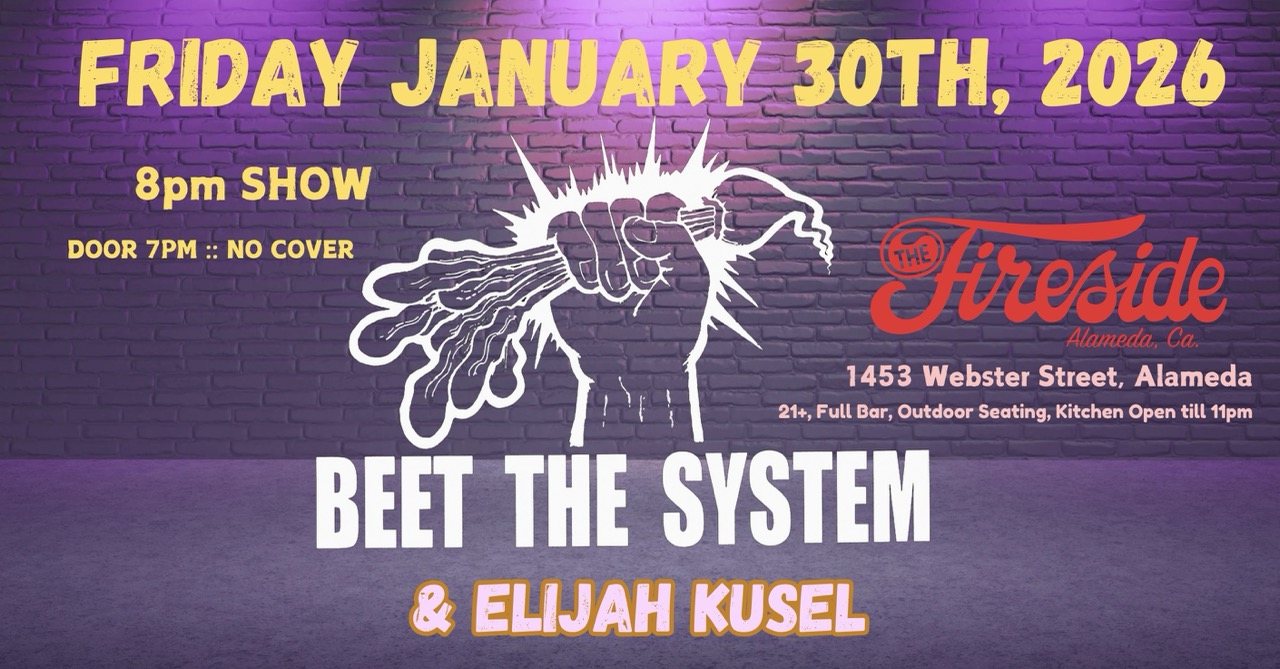 Beet the System is an uplifting and organic-fresh yet well-seasoned ensemble that has grown out of the compost fermented by one of the Bay Area’s beloved aughts bands, Chemystry Set. Its genesis was inspired by Vermont artist Ben Levitt, aka breakfast, whose Beet the System art inspired long-time tubersmiths Baba Ndjhoni (mandolin) and Sven Eberlein’s (guitar) second musical seeding.
