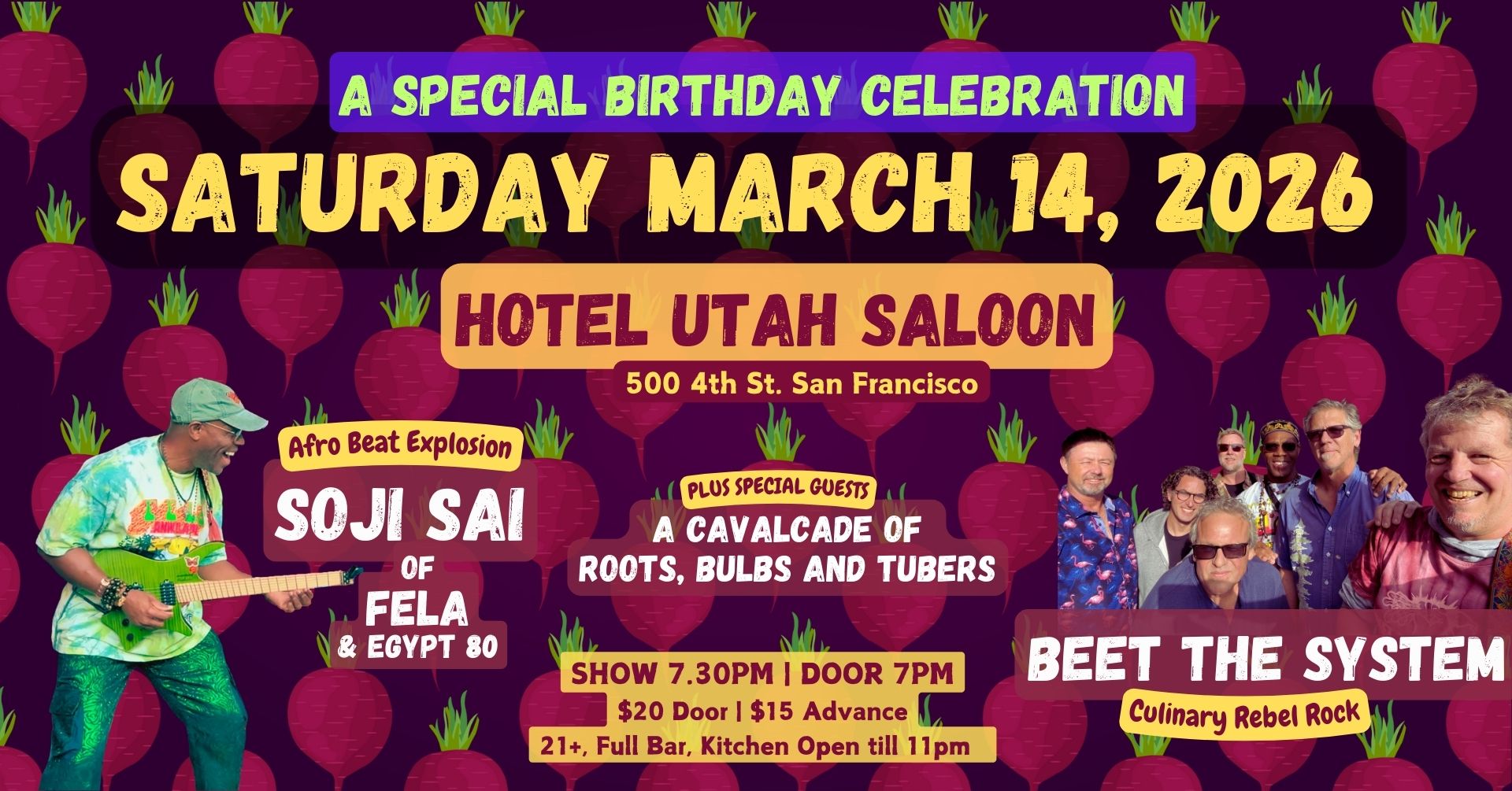 Wandering yonder, down the untilled path, Beet the System is digging beneath the surface to unearth the real dirt on boundary-defying, hip shaking and message-driven musical roots. Lettuce turnip the beet at a thriving pasture near you!